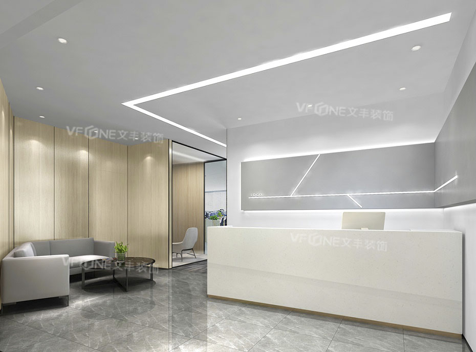 對于一些中小型企業(yè)來說,由于空間自身的原因,公司前廳的空間并不是特別寬闊。在有限的區(qū)域怎樣發(fā)揮,并運用好每一塊空間,也是考驗決策者能力的。簡單的天花雕飾嵌入燈帶的搭配,同樣也能輕松展現(xiàn)出高端大氣感。綠植的整齊排列,減少多余的裝飾細節(jié),也能給來訪的客戶留下好印象。